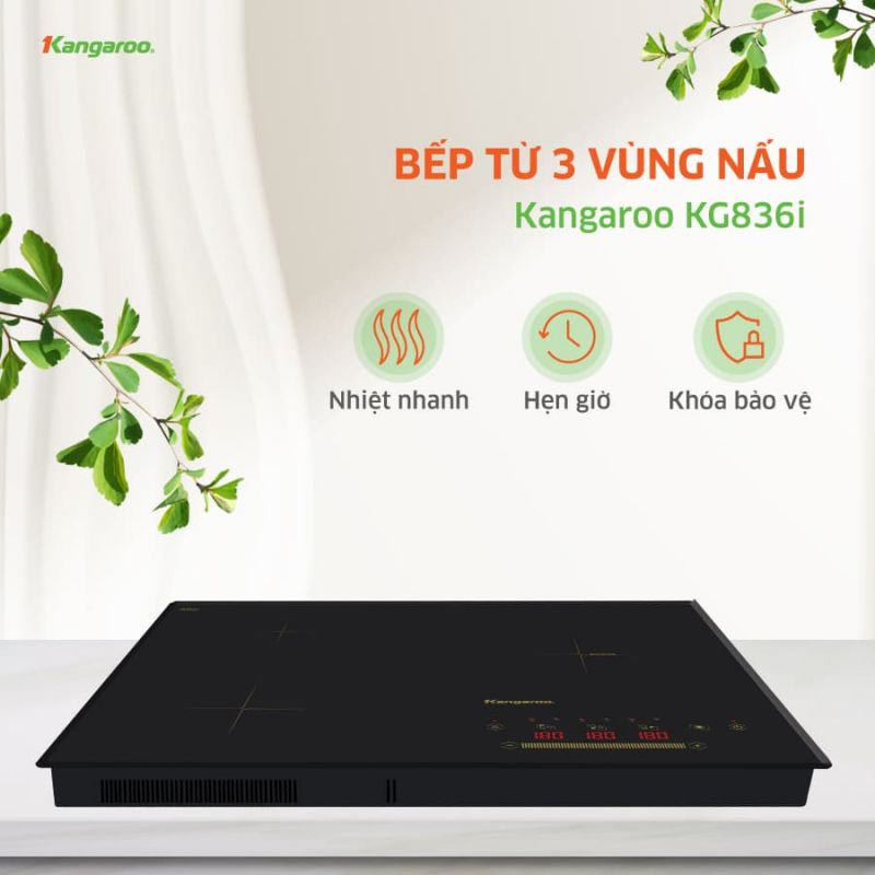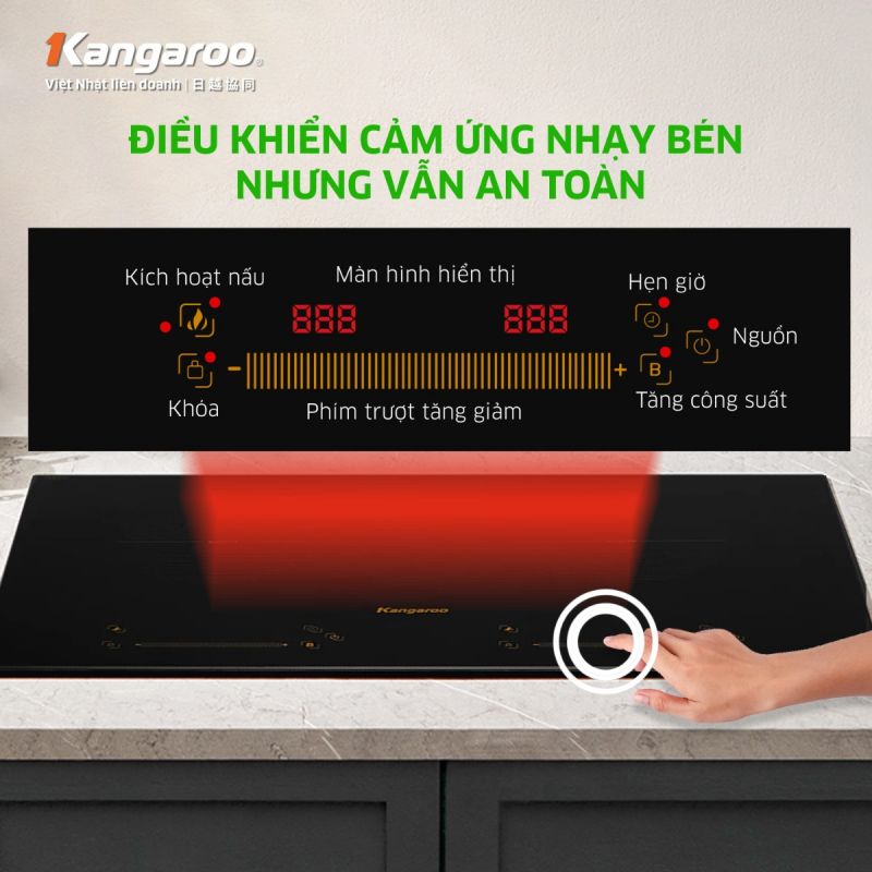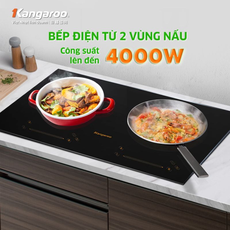 Bếp từ Kangaroo thiết kế sang trọng, hiện đại với 2 vùng nấu tiện dụng