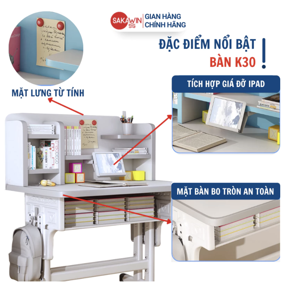 Bộ bàn ghế học sinh tiểu học Sakawin K30 Khung chân đôi chắc Thép sơn tĩnh điện không rỉ.