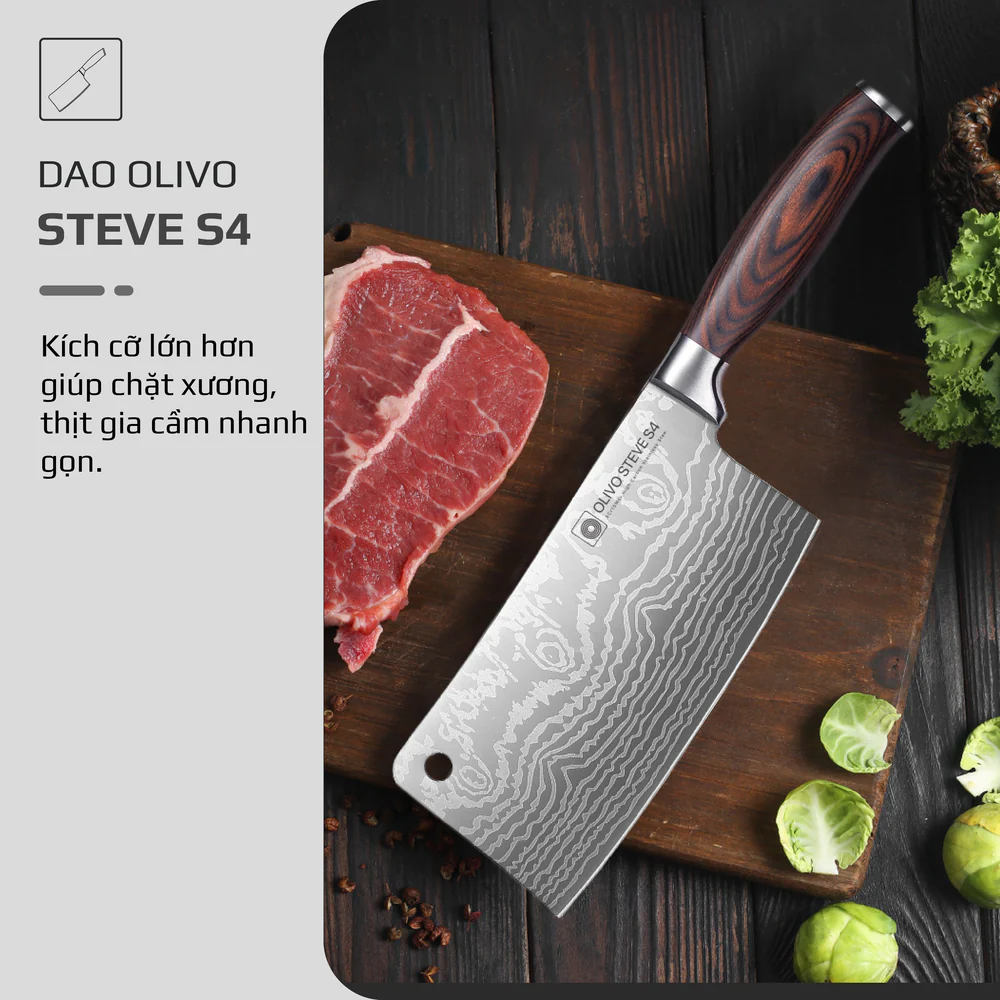 Bộ dao OLIVO STEVE bao gồm 4 loại dao đáp ứng nhu cầu sử dụng đa dạng: Dao OLIVO STEVE S1: dùng để cắt thái các loại thực phẩm mềm như rau củ, thịt cá.Dao OLIVO STEVE S2: lưỡi dao tinh xảo có thêm gờ tròn hạn chế thực phẩm bám lại trên thành dao.Dao OLIVO STEVE S3: kiểu dáng nhỏ gọn thuận tiện cắt gọt trái cây, mũi dao nhọn dễ lọc thịt cá.Dao OLIVO STEVE S4: kích cỡ lớn nhất giúp chặt xương, thịt gia cầm nhanh gọn. 7. DỄ DÀNG SỬ DỤNG