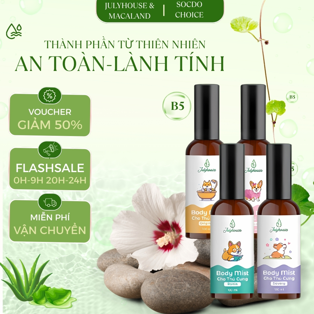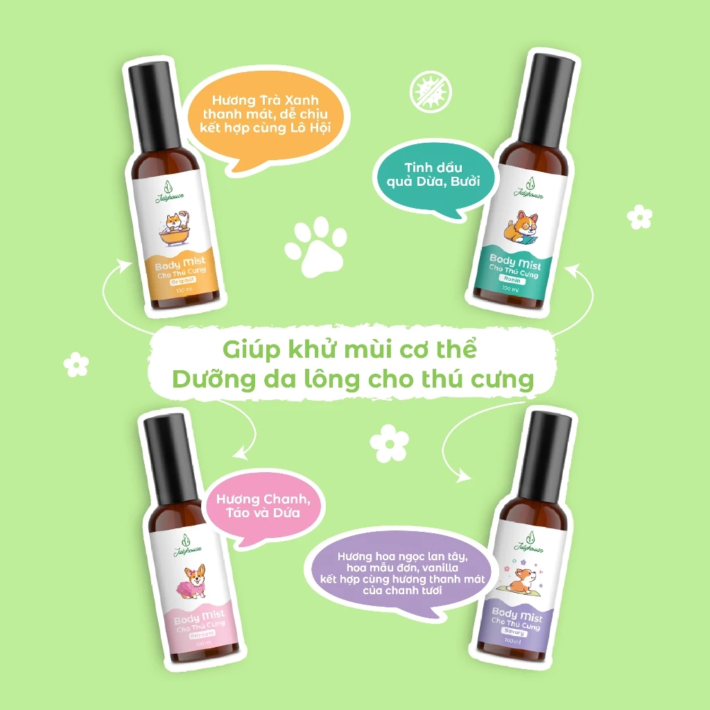 Bodymist xịt thơm khử mùi cho chó mèo JULYHOUSE có 4 hương: