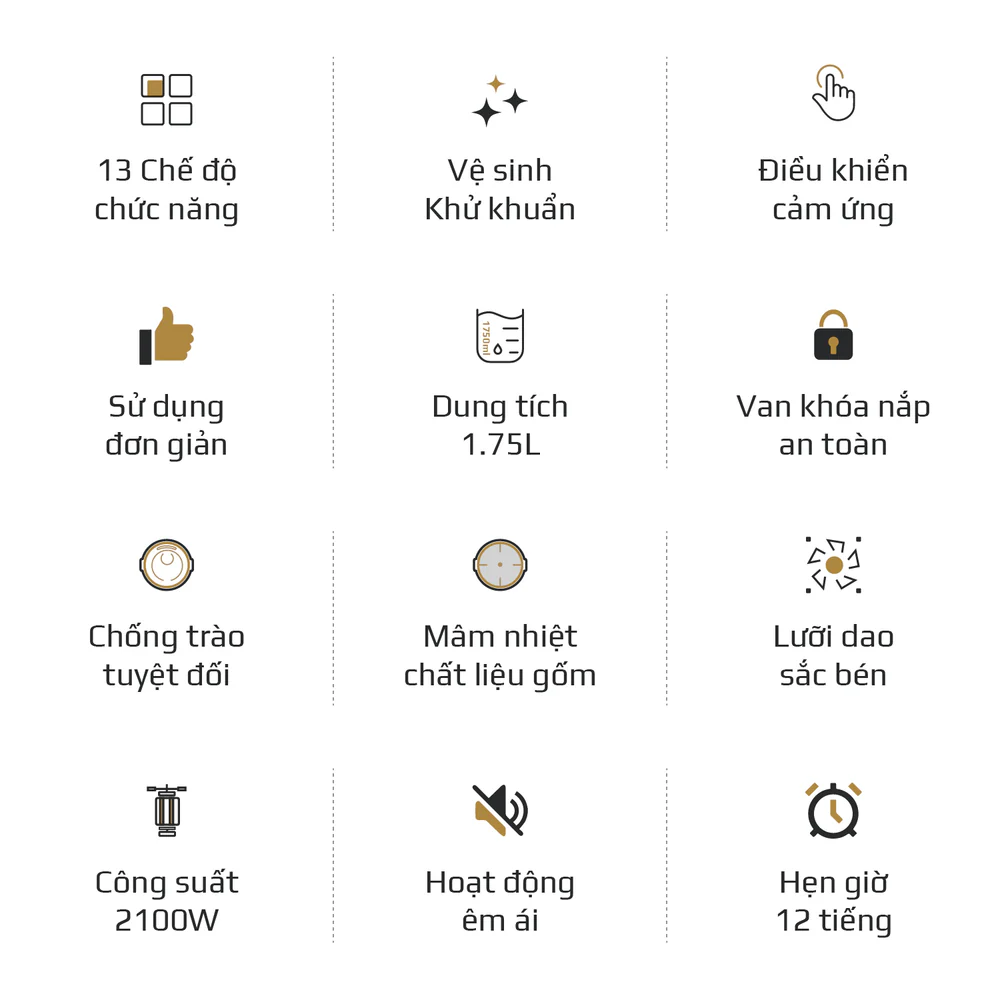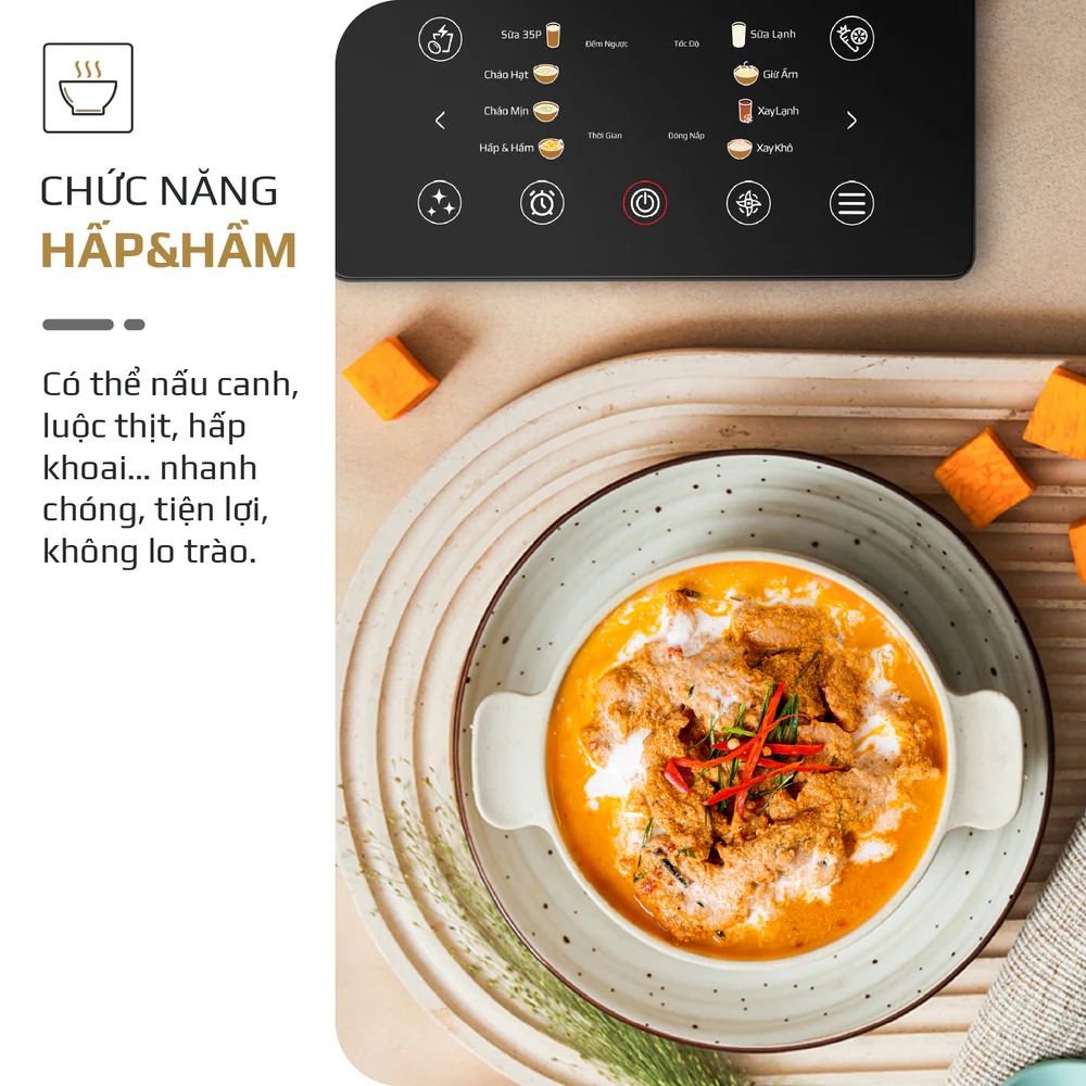 Đa chức năng: Xay – Nấu – Hầm – Ninh – Làm sữa hạt – Nấu cháo – Nấu súp – Làm sinh tố.