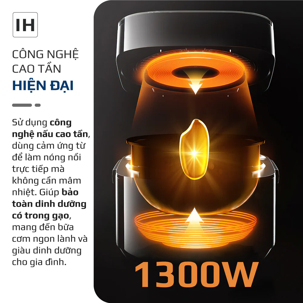 2.CÔNG NGHỆ NẤU CAO TẦNCông nghệ nấu cao tần (Induction Heating – IH) là một trong những điểm mạnh của RC900IH. Công nghệ này không chỉ gia nhiệt nhanh mà còn giúp nhiệt lượng được phân bổ đồng đều từ mọi phía