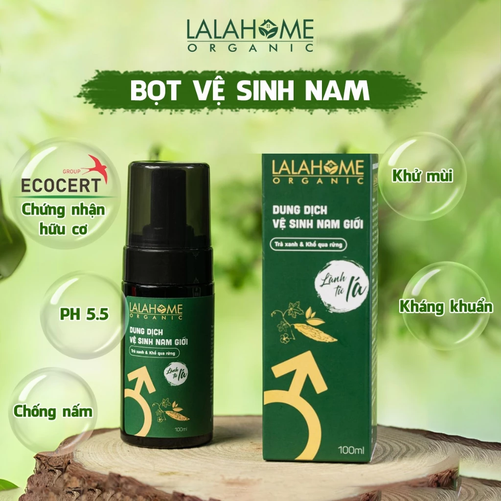 - Thành phần tự nhiên, an toàn cho da: Dung dịch vệ sinh nam LalaHome Organic 100ml được chiết xuất từ trà xanh và khổ qua rừng, mang lại khả năng làm sạch dịu nhẹ, không gây kích ứng. Công thức không chứa sulfate, paraben hay hóa chất độc hại, đã qua kiểm nghiệm da liễu, phù hợp với mọi loại da, đặc biệt là da nhạy cảm, đảm bảo an toàn và lành tính khi sử dụng hàng ngày cho vùng kín nam giới.