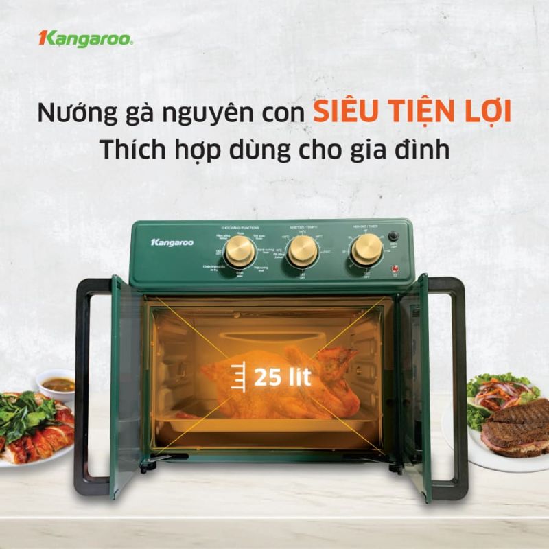 Lò chiên không dầu Kangaroo 25L KG25AF2A với thiết kế nhỏ gọn, chế độ chiên nướng riêng biệt. Menu nấu đa dạng mang đến sự tiện lợi cho khách hàng. Mọi công năng hiện đại nhất được tích hợp trong chiếc lò chiên không dầu Kangaroo 25L KG25AF2A.