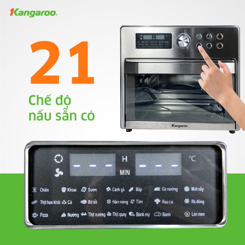 Với phương châm “Tối giản – Tất cả trong 1”, lò chiên KG15AF3A của Kangaroo giúp người dùng tiết kiệm chi phí, cũng như không gian bếp khi thay thế 9 loại thiết bị bếp như lò vi sóng rã đông, nồi chiên không dầu, lò nướng, máy nướng Pizza, máy nướng bánh mì, máy làm bỏng, máy ủ sữa,…