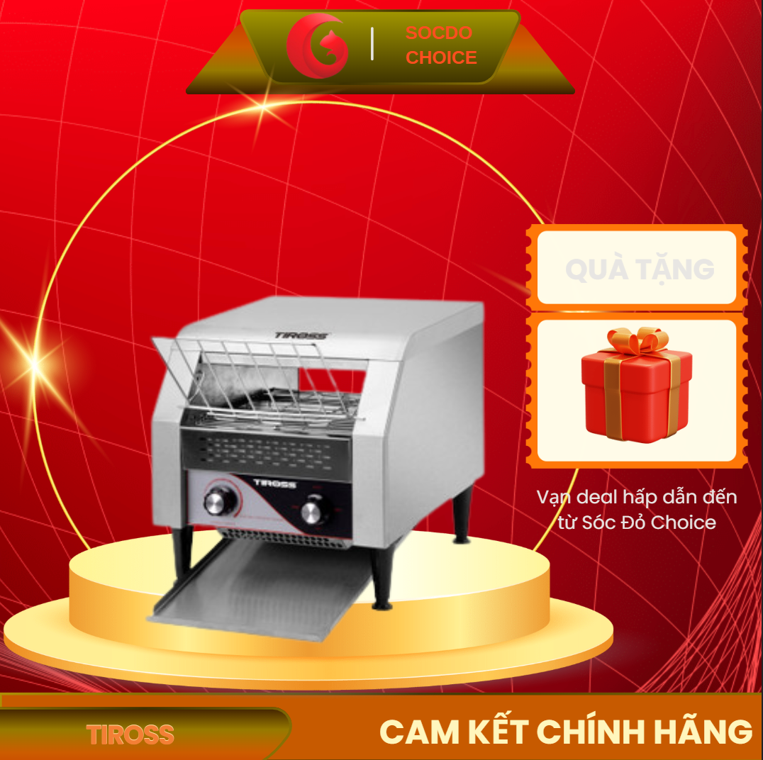 Lò nướng băng chuyền Tiross TS9665, công suất 2200W, 4 thanh nhiệt, nướng 300-350 lát bánh/giờ. Có 7 tốc độ băng chuyền, 3 chế độ nướng: trên, dưới, cả hai. Khay hứng bánh trước/sau, dễ vệ sinh. Thiết kế inox chống gỉ, bền, sáng bóng. Chức năng tạm dừng tiết kiệm điện. Hẹn giờ linh hoạt, núm vặn dễ điều chỉnh. Phụ kiện: khay hứng. Bảo hành 12 tháng, phù hợp cửa hàng, quán ăn.