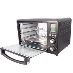 Lò nướng điện 28L, 1500W, 4 thanh nhiệt trên/dưới, hỗ trợ đa chức năng: nướng, rã đông, hâm nóng. Màn hình LCD hiển thị rõ, hẹn giờ 60 phút, nhiệt độ 70-230°C, nướng chín đều. Khay hứng mỡ thừa tiện lợi, dễ vệ sinh. Thiết kế inox hiện đại, cửa kính cường lực, tay cầm chống bỏng, chân đế chống trượt. Phụ kiện: khay nướng, vỉ nướng, xiên quay. Bảo hành 12 tháng, tiết kiệm điện, phù hợp gia đình và cửa hàng nhỏ. (500 ký tự)