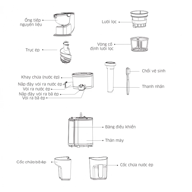 Cốc chứa nước ép, bã ép