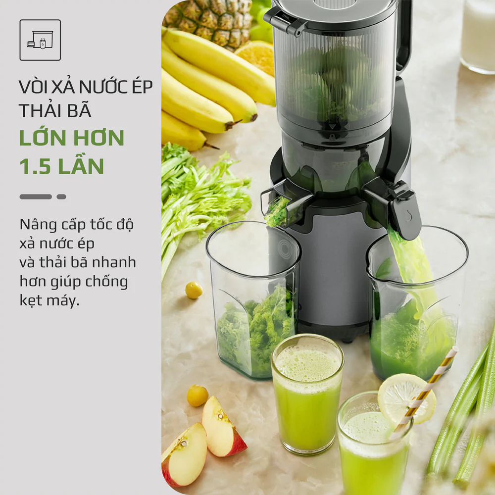 Ép đa dạng thực phẩm: Xử lý tốt hoa quả mềm, củ cứng (cà rốt, củ dền), rau lá (cần tây, cải xoăn) và cả hạt dinh dưỡng để làm sữa hạt thơm ngon.