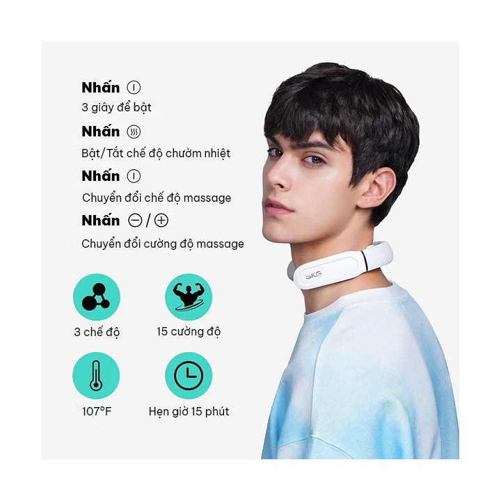 | Đóng gói | 01 x Máy massage cổ SKG 4356E 01 x Cáp sạc USB Type-C 02 x Miếng gel dán 01 x Sách hướng dẫn sử dụng |