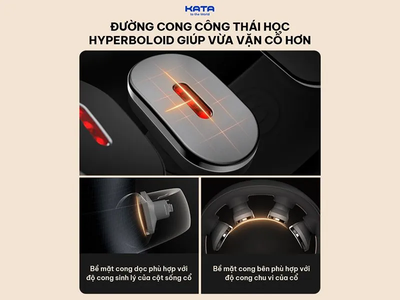 - Đầu massage cong 3D dạng Hyperboloid vừa vặn cổ tuyệt đối.