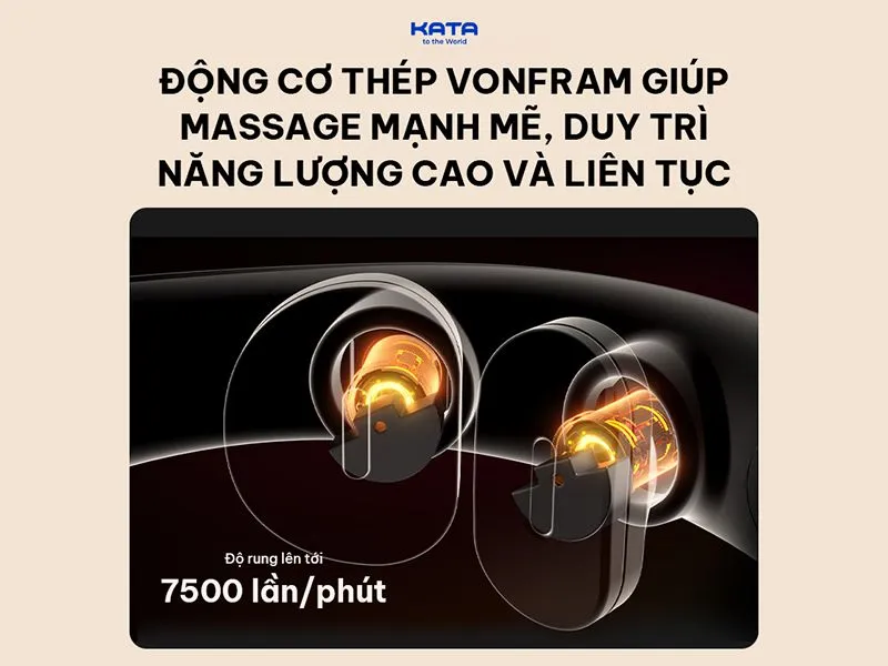 - Đầu massage cong 3D: 4 đầu massage đối xứng, mô phỏng đường cong cổ, tác động chính xác vào huyệt Phong Trì, Thiên Trụ và vùng xung quanh, đảm bảo ôm sát, không lỏng lẻo.