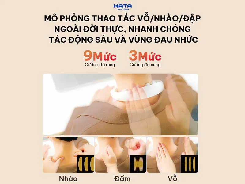 - 9 mức cường độ rung: Tùy chỉnh từ nhẹ nhàng đến chuyên sâu, phù hợp mọi nhu cầu.