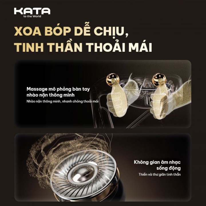 | Công nghệ massage | Kết hợp mát xa và âm nhạc trị liệu Đầu massage bi lăn + mô phỏng lòng bàn tay xoa bóp các nhóm cơ. Chườm nóng 3 kỹ thuật: cận hồng ngoại 830nm + 28 đèn ánh sáng đỏ 640nm + màng sưởi FPC 4 chế độ massage + 3 mức nhiệt chườm |