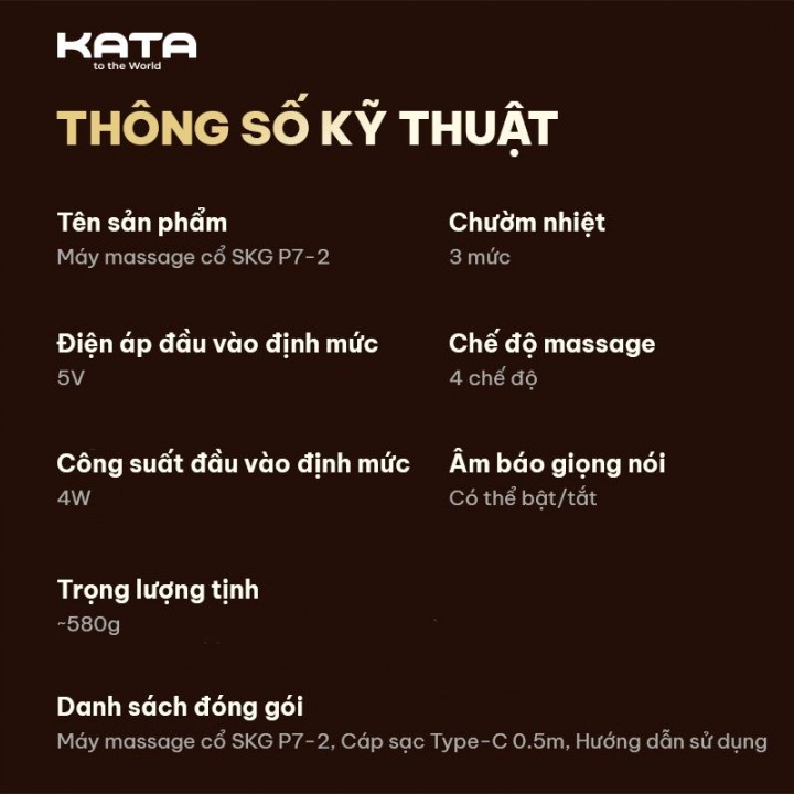 | Đóng gói | 01 x máy massage SKG P7-2 01 x cáp sạc Type-C 01 x hướng dẫn sử dụng |