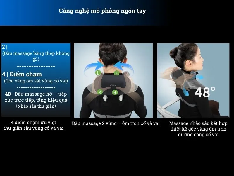 4 đầu massage di chuyển nhào bóp liên tục tác động mạnh đến các huyệt, da thịt giúp mang lại cảm giác thư giãn sâu và đều đặn. Chế độ này đặc biệt hiệu quả và phù hợp cho những người bị căng cứng cơ, đau mỏi vai gáy sau một ngày dài làm việc.
