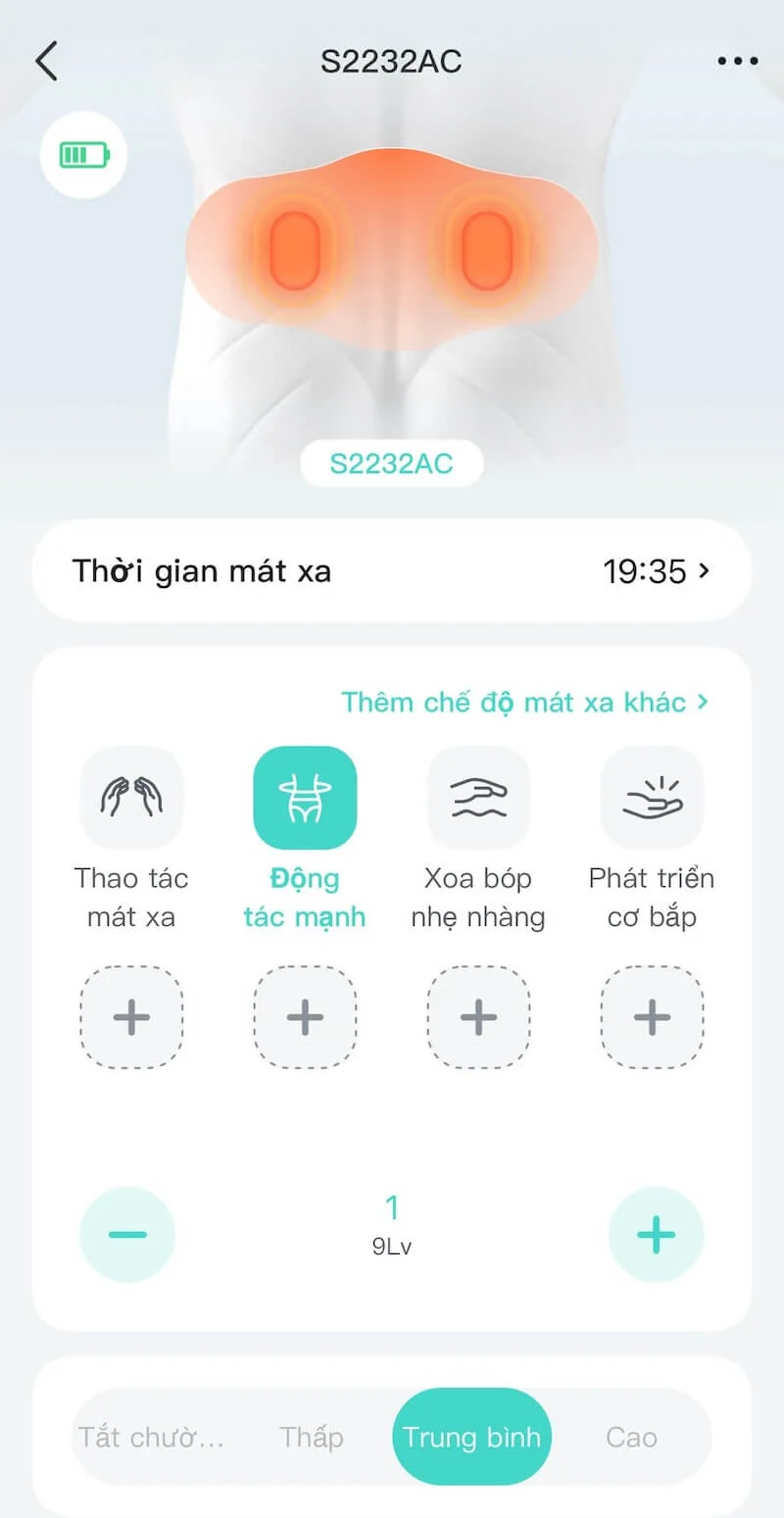 | Cường độ massage | 9 mức |