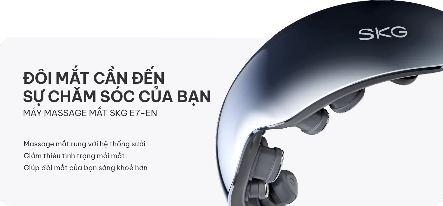 Đôi mắt thâm quầng, mệt mỏi do thức khuya, làm việc liên tục với máy tính hoặc điện thoại là dấu hiệu cảnh báo bạn cần chăm sóc mắt ngay. Để bảo vệ đôi mắt, hãy ngủ sớm, sử dụng sản phẩm dưỡng mắt chuyên biệt và thư giãn với máy massage mắt SKG E7. Sản phẩm này giúp giảm mỏi mắt, quầng thâm, bọng mắt, mang lại đôi mắt khỏe mạnh, tinh anh, sẵn sàng cho công việc và cuộc sống.