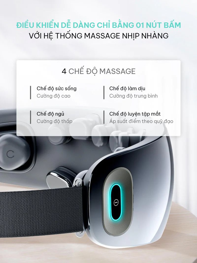 -Làm dịu (Soothing Mode): Rung nhẹ, chườm nóng, kết hợp nhạc, làm dịu căng thẳng, khô mắt.