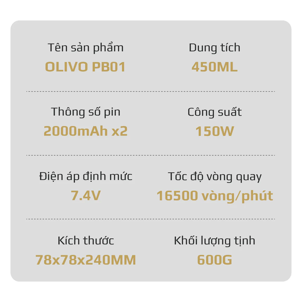 OLIVO PB01 chính là lựa chọn hoàn hảo cho những ai yêu thích sự tiện lợi, muốn duy trì thói quen uống sinh tố, nước ép tươi ngon mỗi ngày – ngay cả khi bận rộn.