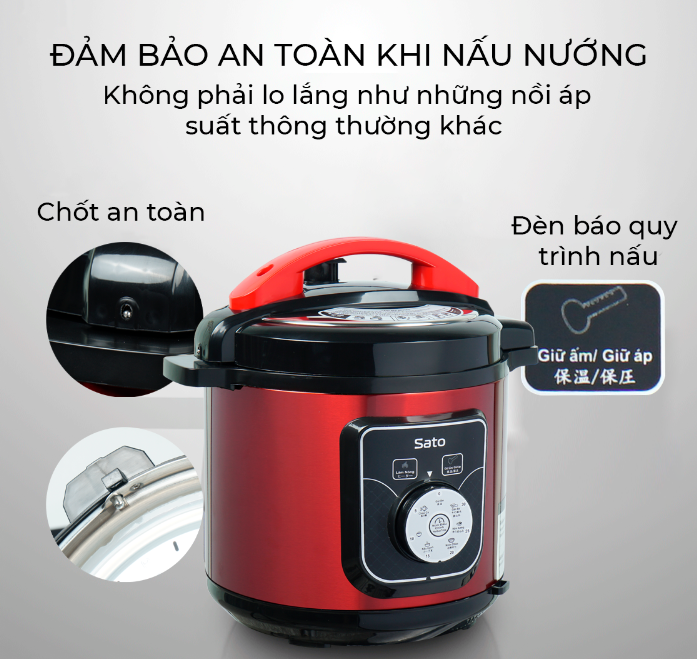 Nồi Áp Suất Đa Năng SATO 6AS015 6.0L mang đến bữa ăn bổ dưỡng, nhanh chóng nhờ công nghệ Nhật Bản và sản xuất tại Việt Nam. Với dung tích 6 lít, công suất 1000W, sản phẩm phù hợp cho gia đình 4-6 người, đảm bảo nấu nhanh, an toàn, tiết kiệm thời gian. Đặc biệt,