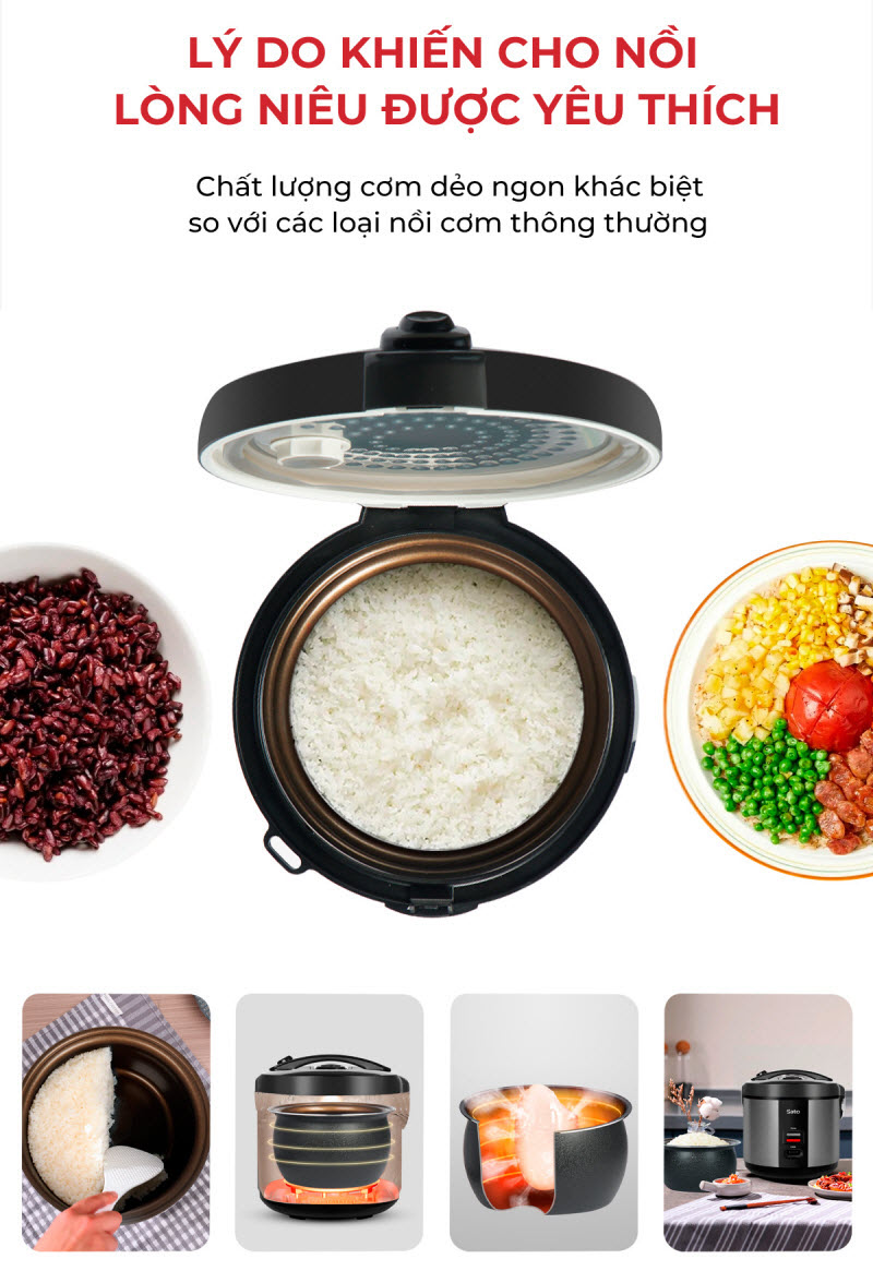 Nấu thông minh: Ủ ấm đa chiều giữ cơm nóng lâu, không khô.
