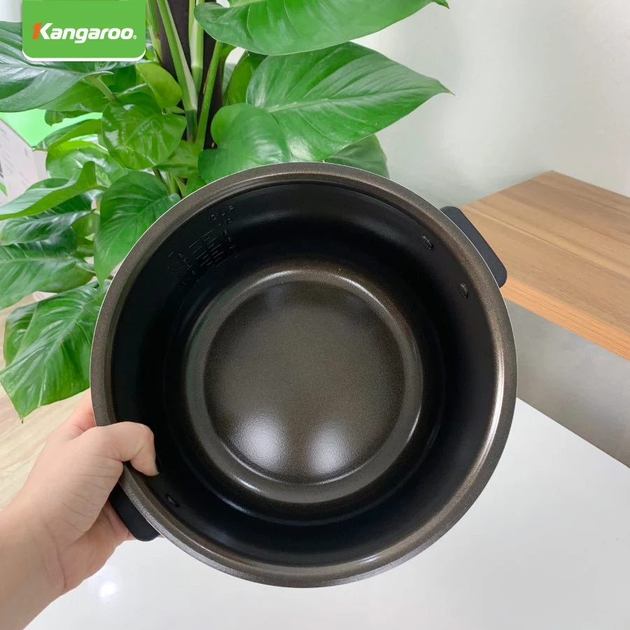 Nồi cơm điện Kangaroo KG595 có ruột nồi làm từ hợp kim nhôm cao cấp, dẫn nhiệt tốt, nấu cơm nhanh, tiết kiệm điện năng. Lòng nồi có tay cầm cách nhiệt giúp bạn di chuyển lòng nồi khỏi thân nồi dễ dàng, không sợ bị bỏng.