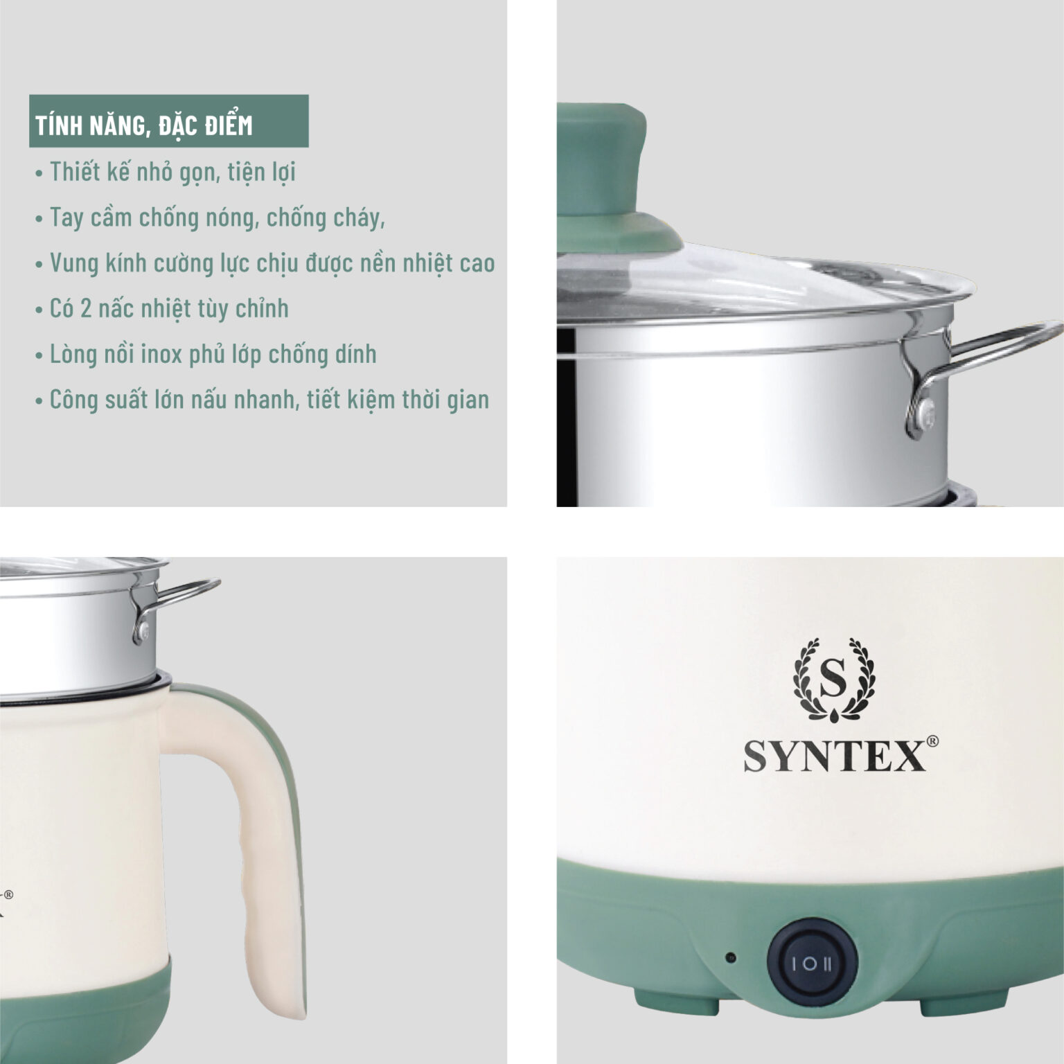 Nồi Lẩu Mini Đa Năng 1.8L Syntex SKM600 - Tiện lợi, chống dính, an toàn