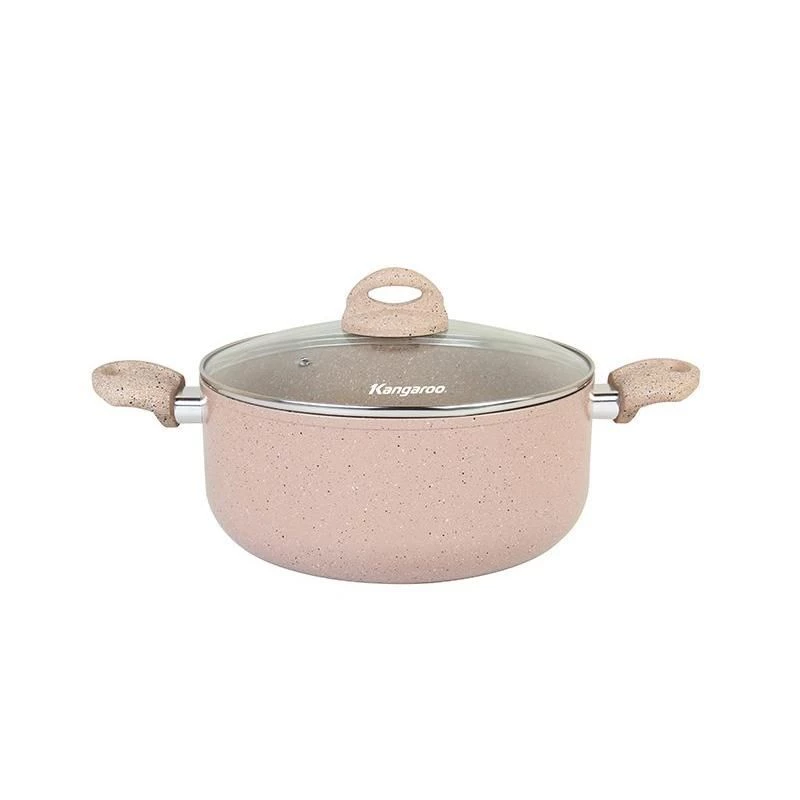 Nồi nhôm đáy từ KG933XL vân đá hoa cương siêu bền, có khả năng chống dính, chống trầy xước. Tay cầm silicon cách nhiệt, giúp bạn không bị bỏng tay.