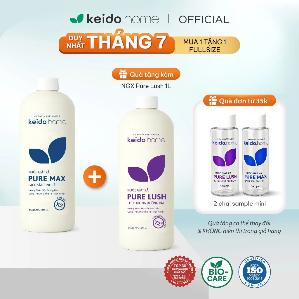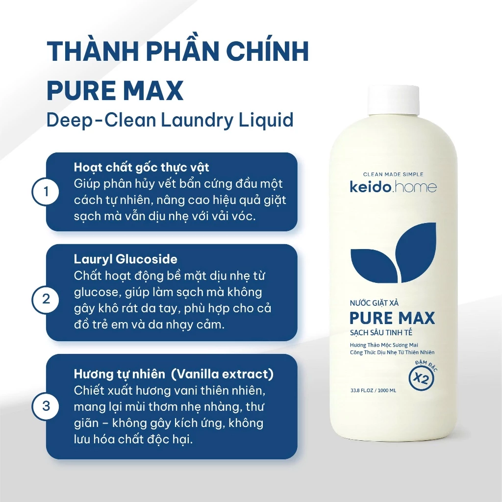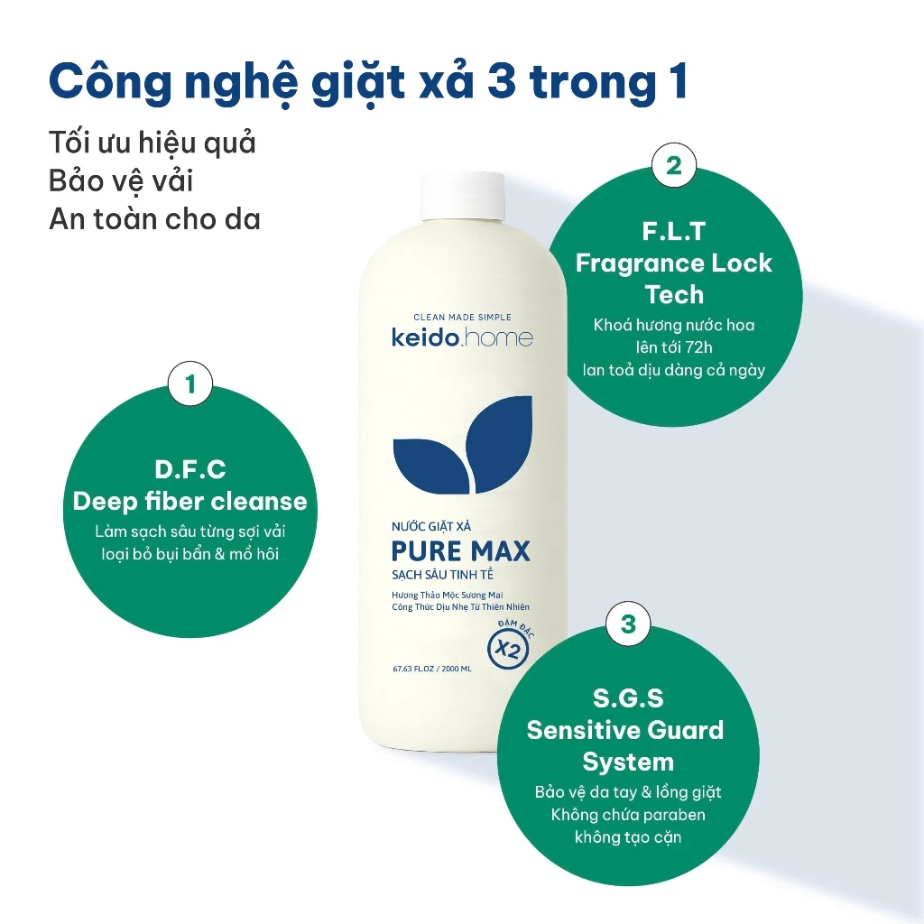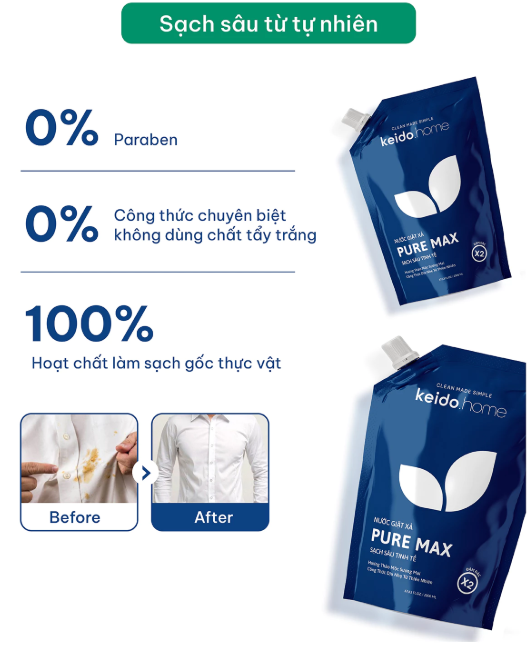 ???? NƯỚC GIẶT XẢ KEIDO.HOME PURE MAX – SẠCH SÂU – TINH TẾ – BẢO VỆ VẢI DÀI LÂU