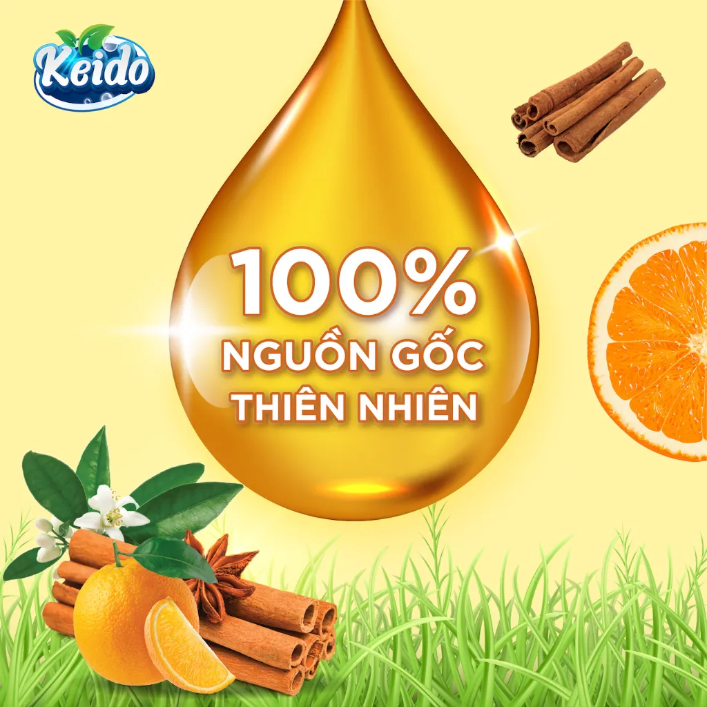 KEIDO tự hào khi áp dụng công thức sản xuất dựa trên nghiên cứu khoa học kết hợp kiến thức truyền thống về tinh dầu thiên nhiên. Sản phẩm chứa tinh dầu sả chanh nguyên chất – thành phần nổi tiếng với khả năng đuổi côn trùng nhờ mùi hương đặc trưng khiến chúng mất định hướng và tránh xa. Hương chanh Persian mang đến cảm giác sảng khoái, khử mùi hôi khó chịu từ ẩm mốc, thức ăn hay vật nuôi. Ngoài ra, KEIDO sử dụng các hoạt chất làm sạch phân hủy sinh học, không chứa chlorine, amoni bậc bốn hay các hóa chất gây hại. Điều này giúp sản phẩm an toàn với trẻ em, phụ nữ mang thai và thú cưng, đồng thời thân thiện với môi trường, không gây ô nhiễm nguồn nước.