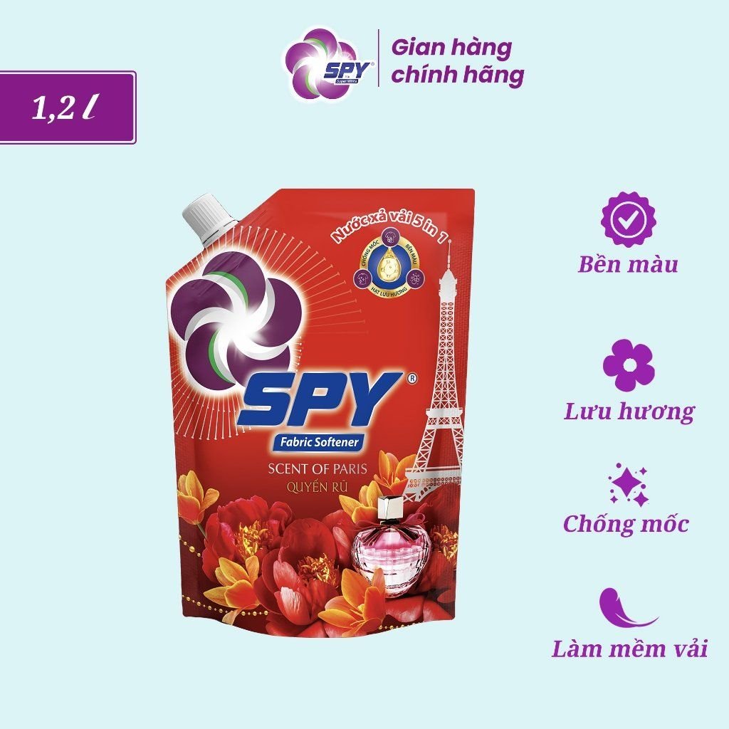 Sản phẩm được đóng gói trong túi 1.2L tiện lợi, có nắp vặn chắc chắn, giúp dễ dàng bảo quản và sử dụng. Dung tích này rất kinh tế cho gia đình, vừa tiết kiệm chi phí vừa giảm thiểu rác thải nhựa. Với Nước xả vải Spy 5in1, việc giặt giũ không còn là công việc nhàm chán mà trở thành một trải nghiệm thú vị, giúp quần áo luôn sạch thơm, mềm mại và bền đẹp.