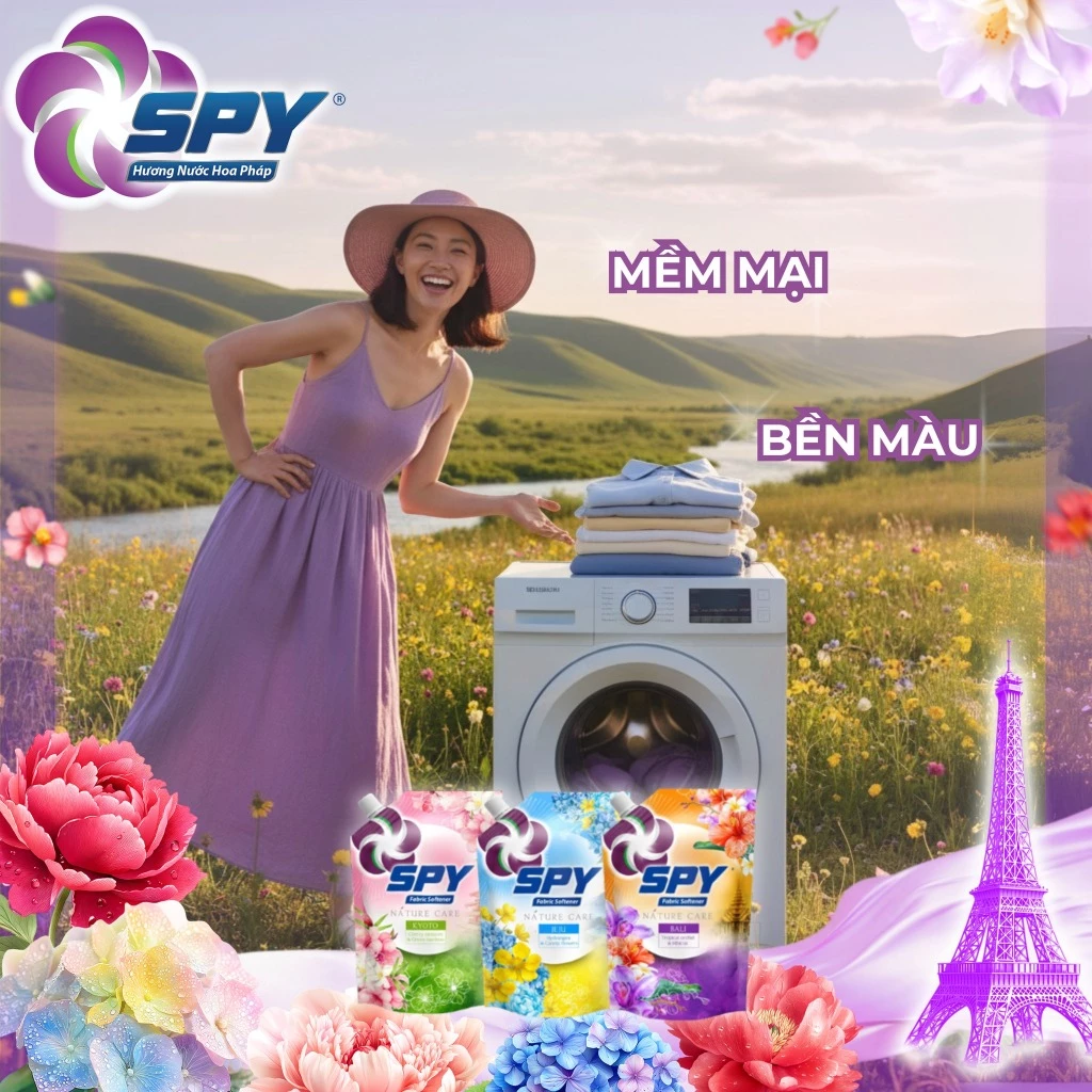 Nước xả vải SPY Thiên Nhiên – lựa chọn an toàn cho cả gia đình, mang lại cảm giác mềm mại, tươi mới và hương thơm tinh tế sau mỗi lần giặt.