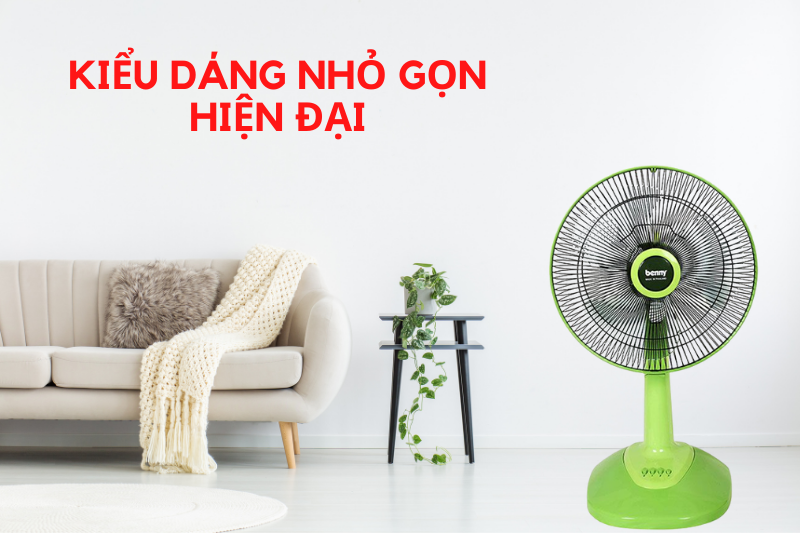 Quạt bàn Benny BFT-46-GN, Green thiết kế nhỏ gọn, không chiếm nhiều diện tích không gian phòng. Lồng quạt có đường kính rộng 30cm giúp bạn dễ dàng bố trí trong phòng, đồng thời với màu sắc tươi sáng, góp phần tô điểm cho căn nhà của bạn thêm phần nổi bật.