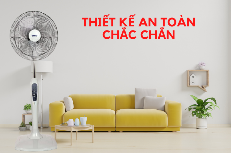 Cánh quạt được làm bằng nhựa có độ giòn hợp lý, không quá mềm cũng không quá cứng, không gãy hỏng trong thời gian dài sử dụng. Đế quạt có dạng hình vuông, tròn, to vững chãi, chống nghiêng đổ, rất an toàn.