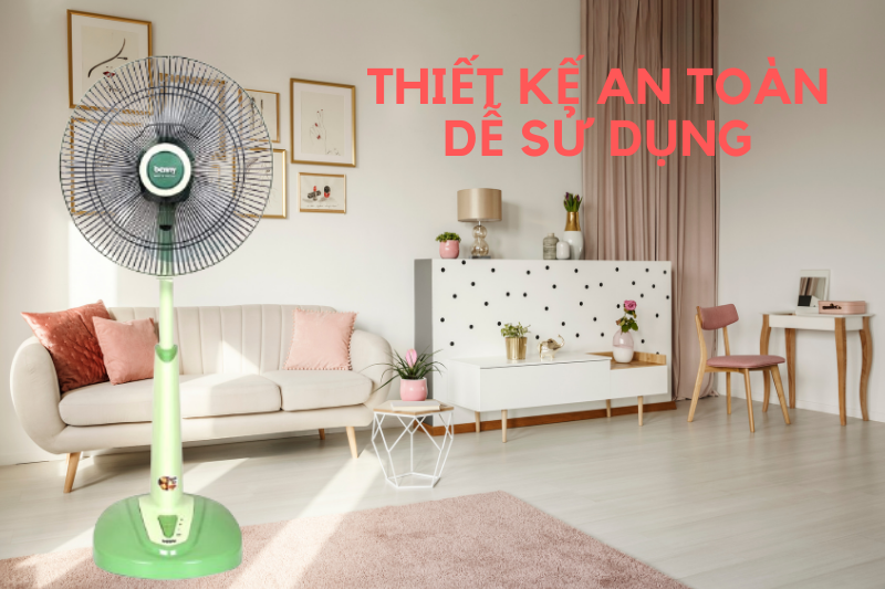 Thân quạt làm bằng nhựa cao cấp tạo độ bền cho sản phẩm, túp năng phía sau giúp người dùng điều chỉnh được luồng gió một cách tiện lợi, đế quạt thiết kế chắc chắn và có các nút điều chỉnh mức gió từ thấp tới cao, động cơ tự ngắt giúp bạn luôn an tâm khi sử dụng sản phẩm.
