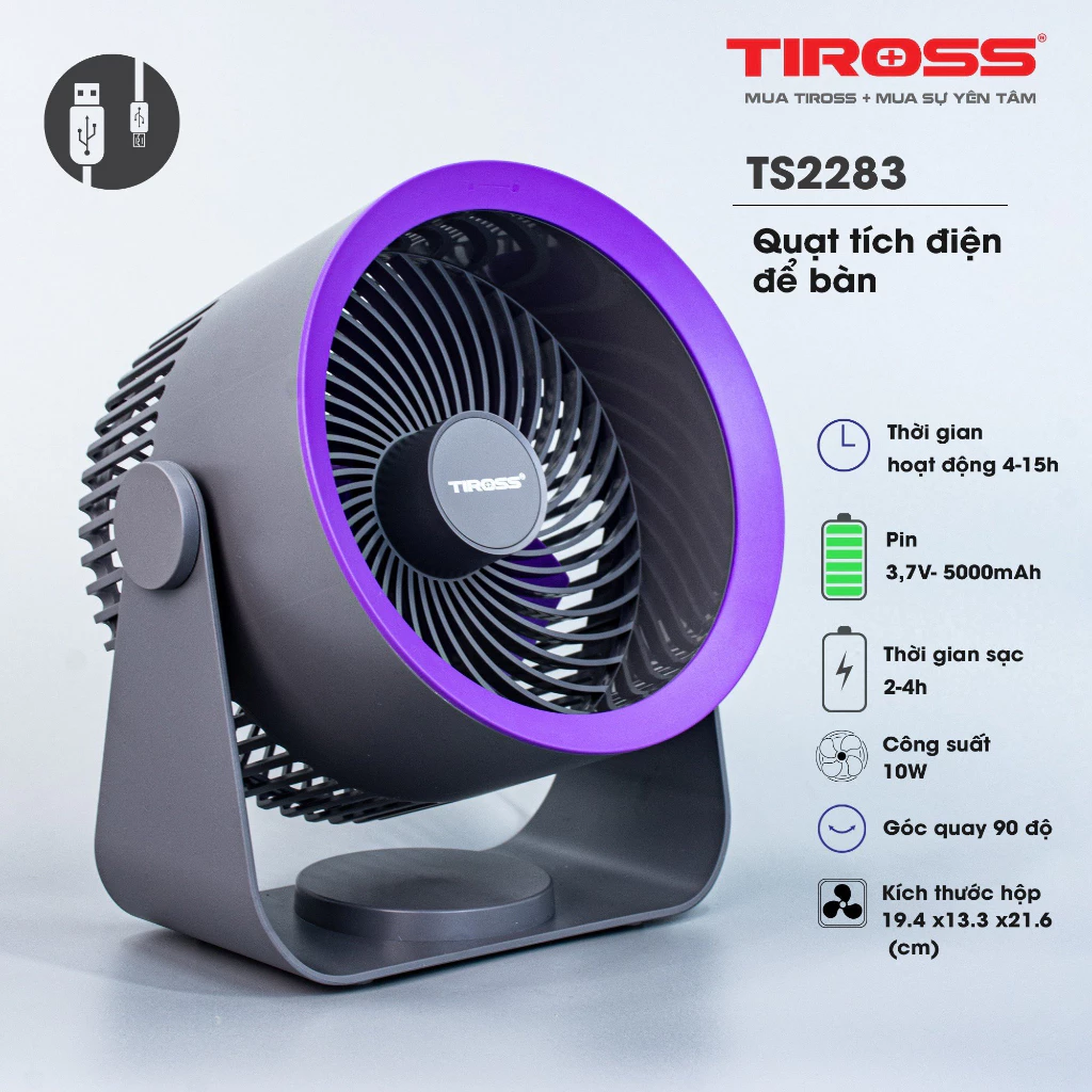 - Công suất 10W, kết hợp 4 cánh xoắn tạo luồng gió mạnh, thổi xa đến 10m, làm mát nhanh và hiệu quả.