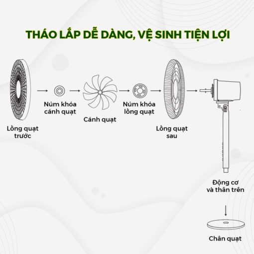 Với thiết kế 1 ốc cố định & khớp khoá, việc tháo lắp để vệ sinh cánh quạt vô cùng đơn giản và nhẹ nhàng.