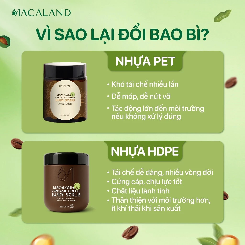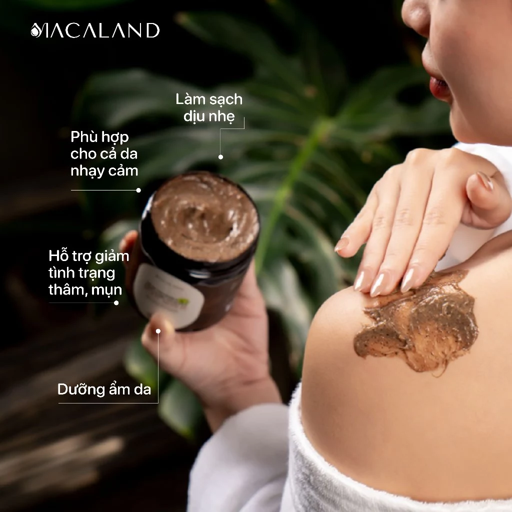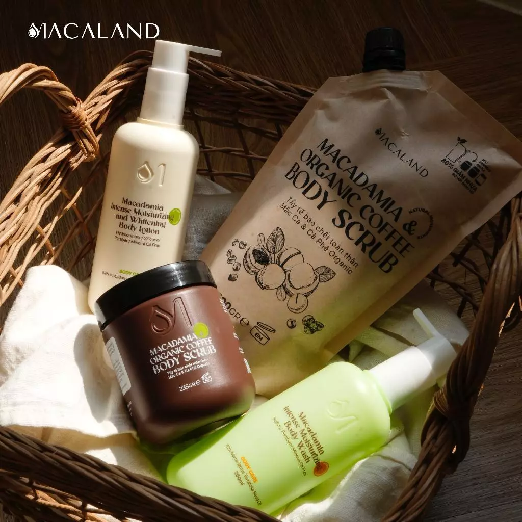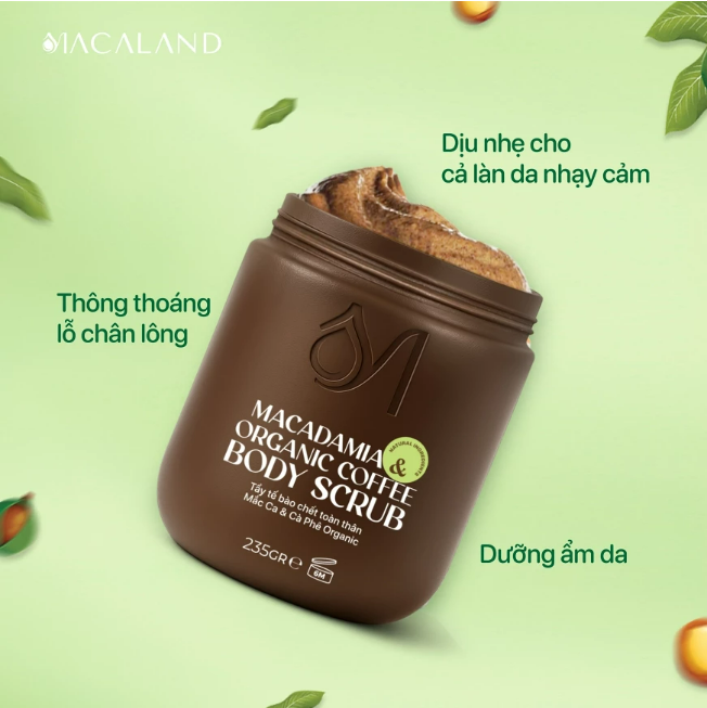 Lần này, Macaland triển khai khai thác vùng nguyên liệu Cà Phê đạt chuẩn Organic ứng dụng vào mỹ phẩm. Tẩy tế bào chết toàn thân là sự kết hợp giữa Bột Mắc Ca, Dầu Mắc Ca và Cà Phê Organic với hy vọng lan tỏa nhận thức về ưu điểm của mỹ phẩm Organic. Đồng thời, sản phẩm giúp nông dân địa phương gia tăng thu nhập và thúc đẩy chuyển đổi nông nghiệp bền vững.
