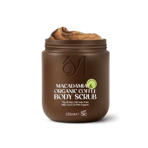 Tẩy tế bào chết từ hạt cà phê organic và mắc ca giúp loại bỏ lớp sừng già