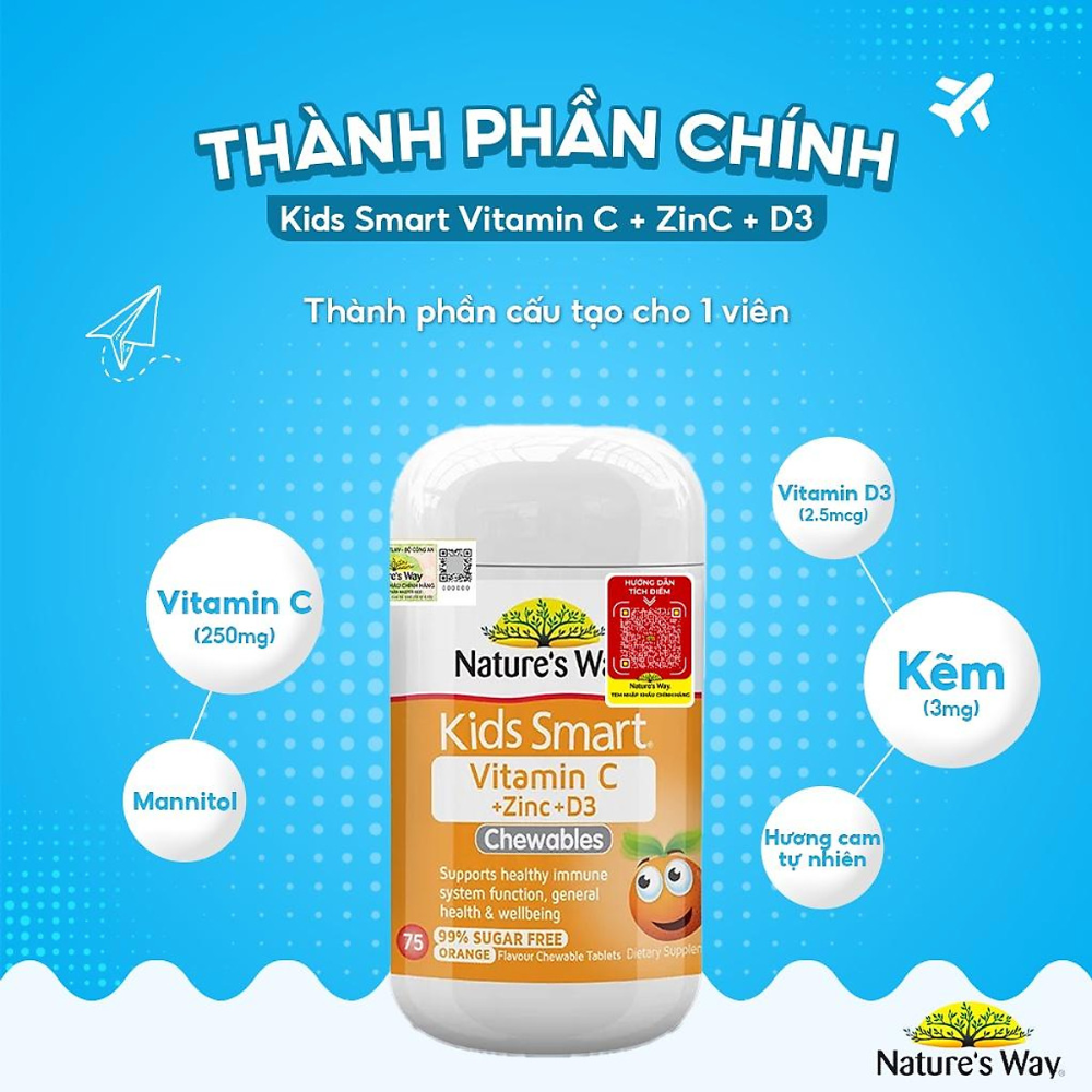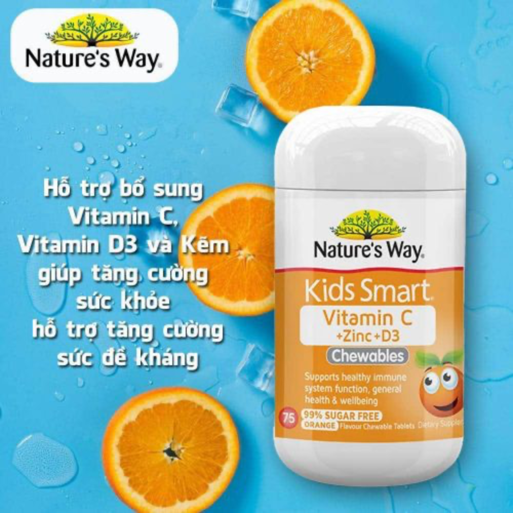 Nature’s Way Kids Smart Vitamin C + Zinc + D3 Chewable Tablets (75 Viên) là thực phẩm bổ sung từ