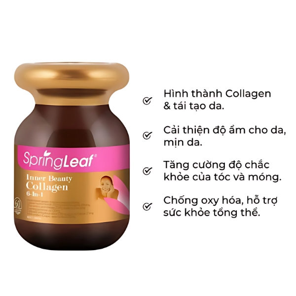 Viên uống collagen SpringLeaf Inner Beauty Collagen 6-In-1 hỗ trợ làm đẹp da lọ 60 viên