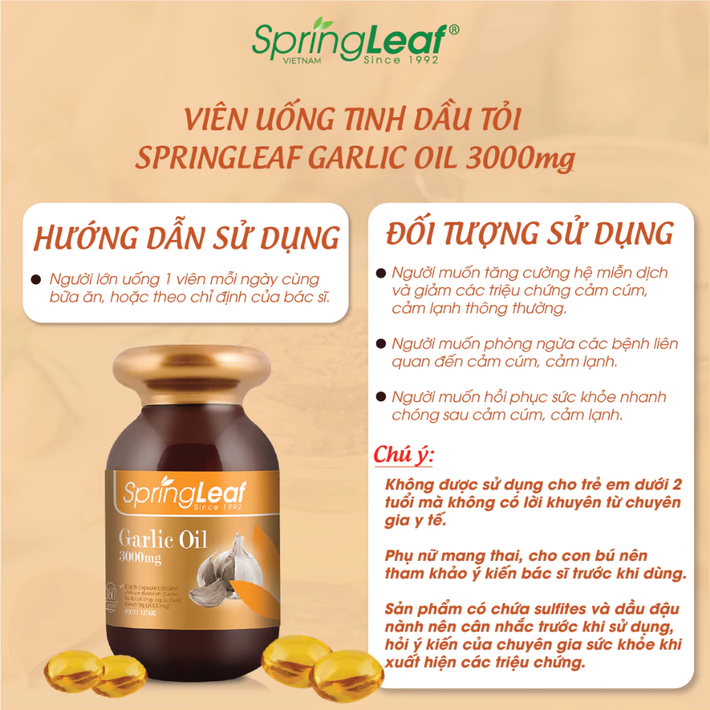 Đừng để cảm cúm làm gián đoạn cuộc sống của bạn! Viên uống tinh dầu tỏi Garlic Oil 3000mg Spring Leaf là giải pháp hoàn hảo để tăng cường sức đề kháng, bảo vệ sức khỏe toàn diện. Hãy đặt mua ngay hôm nay để nhận ưu đãi hấp dẫn và giao hàng tận nơi nhanh chóng!