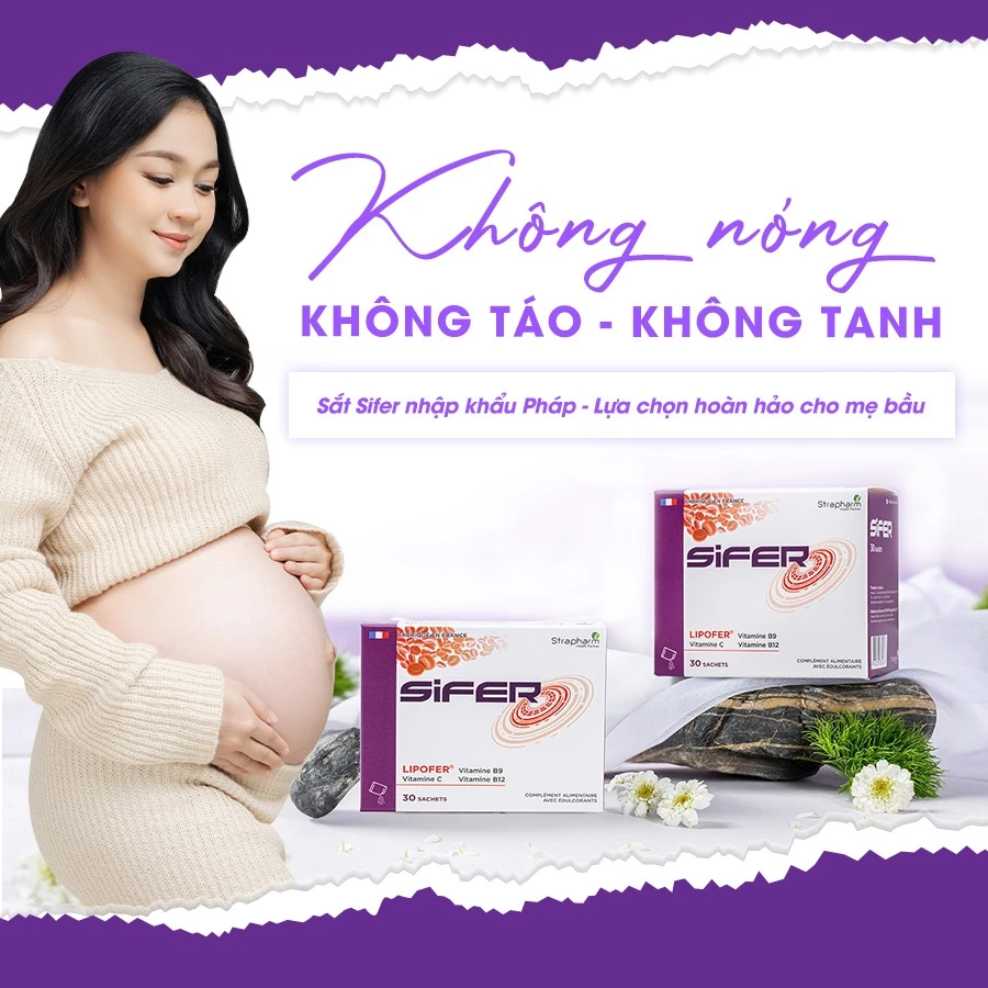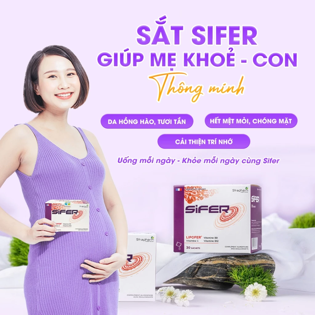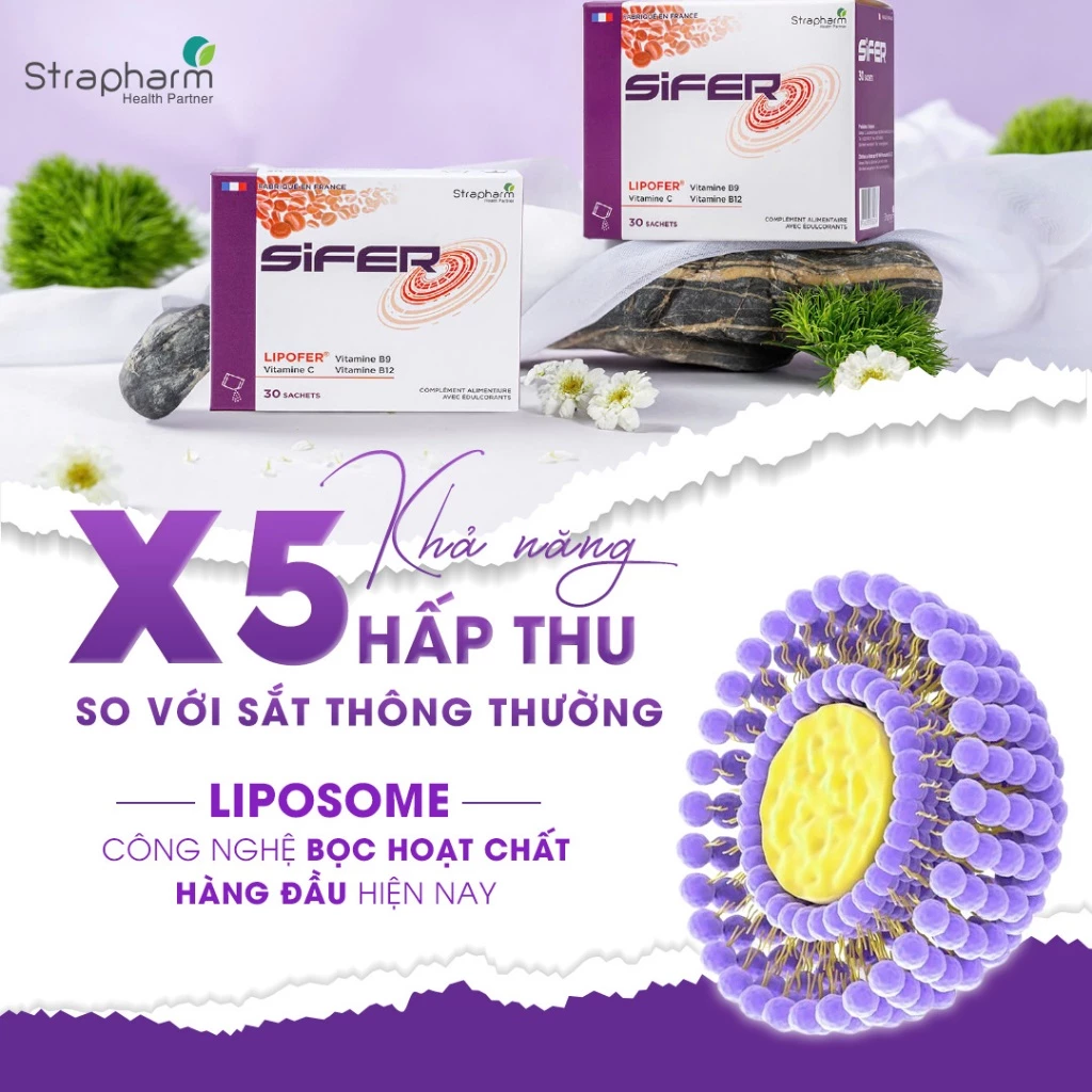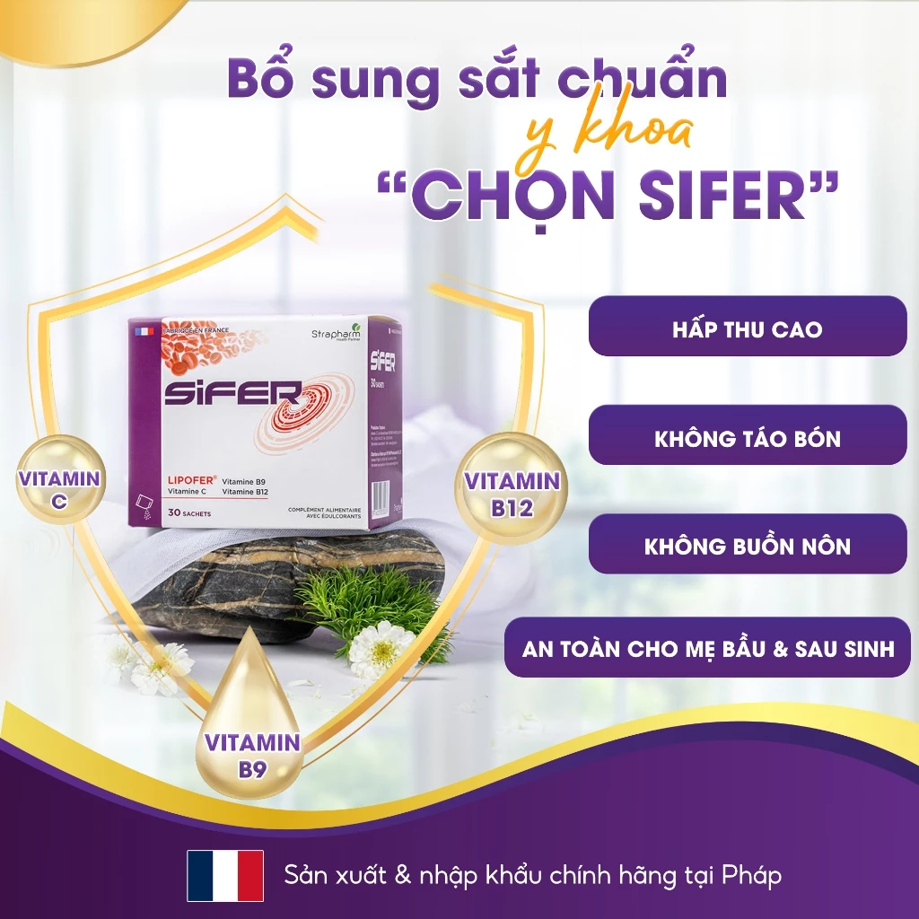 Sifer là thực phẩm bảo vệ sức khỏe giúp bổ sung sắt dễ hấp thu, được nhập khẩu từ Pháp và sử dụng công nghệ Lipofer® hiện đại. Nhờ dạng sắt hữu cơ vi nang hóa, sản phẩm giúp tăng khả năng hấp thu sắt mà không gây táo bón hay buồn nôn như các loại sắt thông thường.