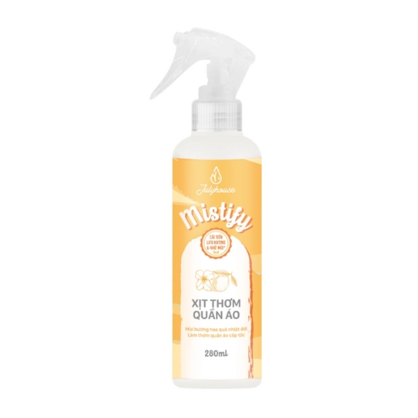 XỊT THƠM QUẦN ÁO MISTIFY (cải tiến lưu hương từ mùi TROPICAL): Tone trái cây nhiệt đới - là sự kết hợp giữa sự tươi mát của Cam Bergamot, thêm chút dịu dàng của hoa Lily và hoa Diên Vĩ. Mùi hương mang lại sự ngọt mát của trái cây nhiệt đới.